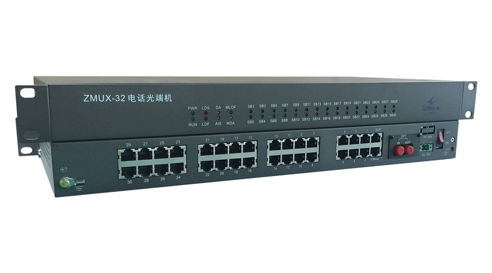 ZMUX-32-30是一款30路電話光端機,主要完成電話、4線音頻(E&M)、RS232、網絡等多業務接入,通過復用到1路光信號傳輸,實現多業務信號點對點通信功能。